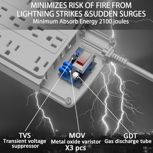 18 Outlets Surge Protector Power Strip – Flat Plug Heavy Duty Extension Cord with 18 Widely Outlets and 4 USB Ports