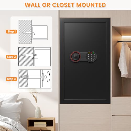ANTI-THEFT ALARM & ANCHORING DESIGN: Our fireproof safe comes with a dual alarm system to prevent password guessing and effectively deter unauthorized access. Enter the wrong password 3 times in a row will activate the alarm system and the safe will lock for 20 seconds. Anchoring design makes you easily fix the safe to the wall or floor, improving safety and reliability