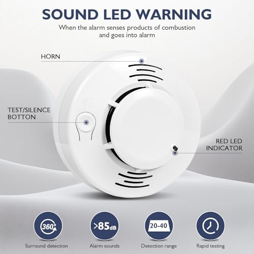 Independent Smoke Alarm, high-Decibel Alarm (85dB), LED Flashing, Silent Test Button, Easy Installation, 3-Year Battery Life, Traditional, Nostalgic and Stable, Suitable for bedrooms