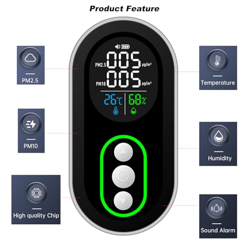 Protmex Indoor Air Quality Monitor, PM2.5 PM10 Detector with Real-Time Display & Buzzer Alarm, Temperature Humidity Sensor, Portable Air Pollution Tester for Home, Office, Car, Baby Room